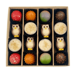 Discover our autumn chocolate praline box, 16 handcrafted Belgian chocolates in an elegant dark brown gift box. Perfect for seasonal gifting or indulgence.