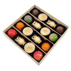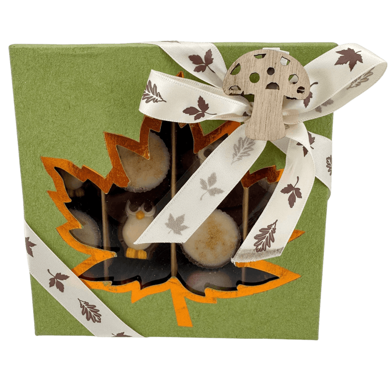 Discover our autumn chocolate praline box, 16 handcrafted Belgian chocolates in an elegant green gift box. Perfect for seasonal gifting or indulgence.