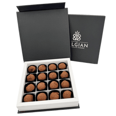Enjoy our box of 16 Belgian chocolate truffles with rich cacao flavour, handmade in Brussels from ethical beans. A refined gift or gourmet indulgence.