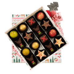 Step into the magic of our Christmas winter wonderland box with 16 handcrafted Belgian pralines (240g). A festive, elegant selection of bean-to-bar creations, perfect for gifting and celebrating the season in true Belgian chocolate style. ☃️