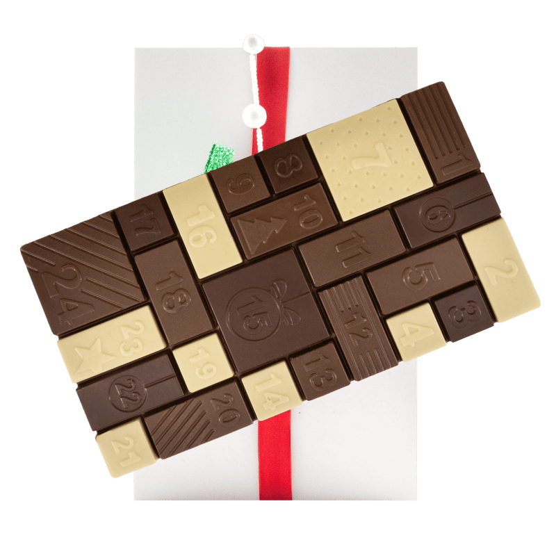 Count down to Christmas with our milk chocolate advent calendar bar 200g, a festive Belgian creation combining creamy milk chocolate and joyful holiday design, perfect for sharing the magic of each day before Christmas.