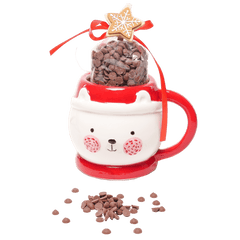 Milk chocolate drops in a Christmas bear Mug 200g, a creamy Belgian treat presented in an adorable festive bear mug. Perfect for gifting, stocking fillers, or enjoying cosy winter moments.