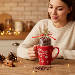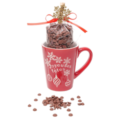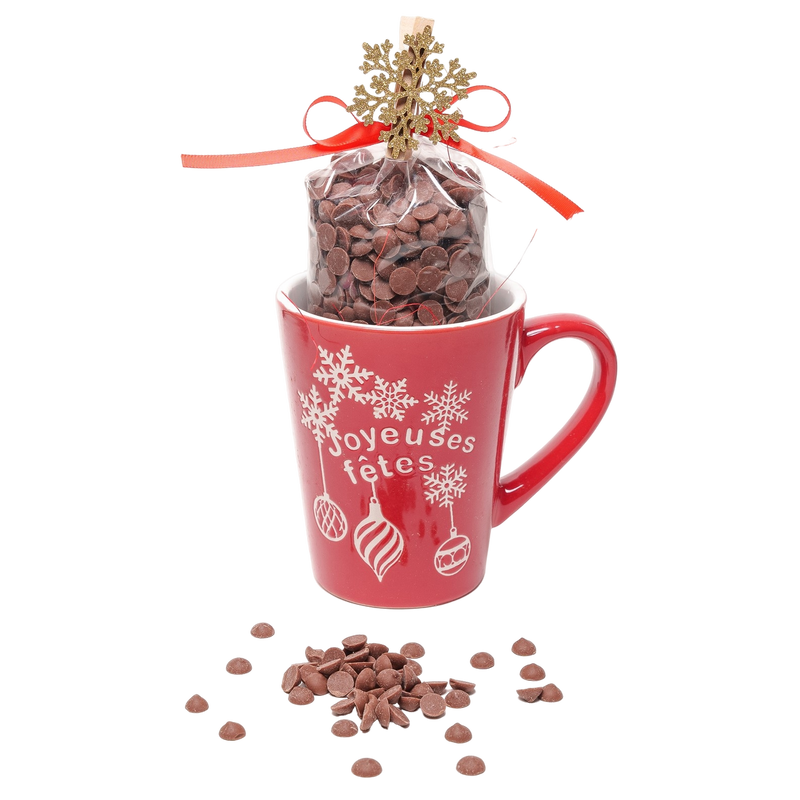 Milk chocolate drops in a festive mug 200g, a creamy Belgian holiday treat presented in a charming festive mug. Perfect for gifting, stocking fillers, or enjoying cosy winter moments.