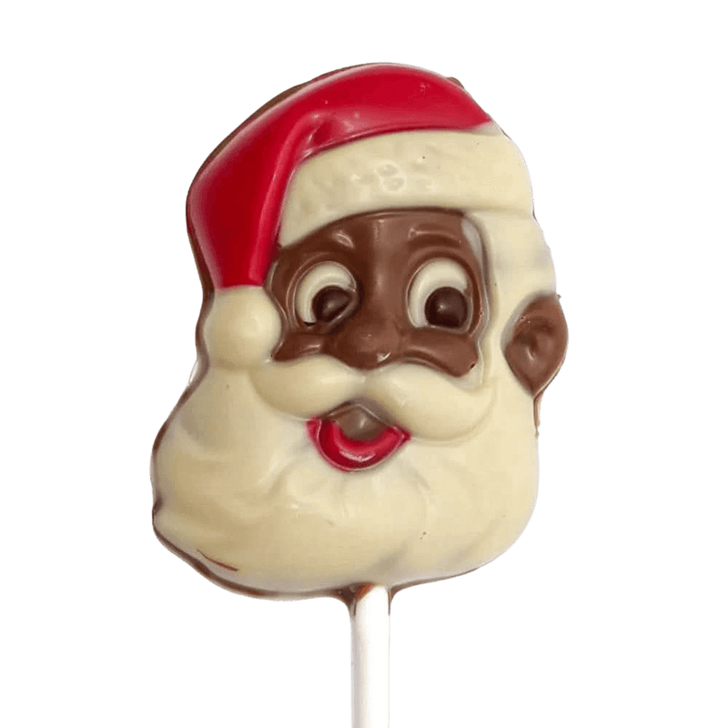 Festive milk chocolate Santa Claus lollipop, handcrafted in Brussels with premium Belgian chocolate. A joyful Christmas treat for kids and chocolate lovers alike.