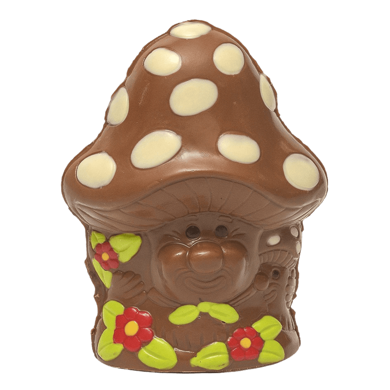 Discover our smiling milk chocolate mushroom 160g, handcrafted in Belgian chocolate. A playful and delicious figurine, perfect for gifting or indulging.