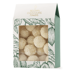 Enjoy our 160g pouch of Belgian chocolate truffles with coconut. Handcrafted in Brussels, marrying rich cacao with exotic coconut flakes for a refined gourmet treat.