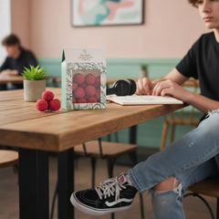 Discover our 160g pouch of Belgian chocolate truffles with raspberry. Handcrafted in Brussels, blending rich cacao with fruity notes for a refined and indulgent treat.