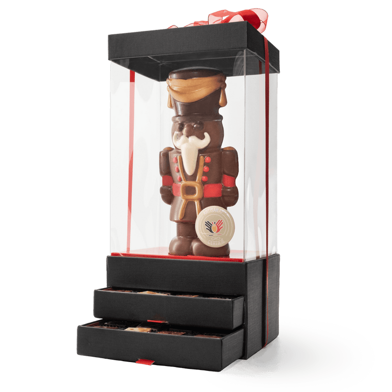 Discover our handcrafted skyline nutcracker with 700g of fine pralines, made in Brussels. A festive gourmet centerpiece for gifting or sharing.