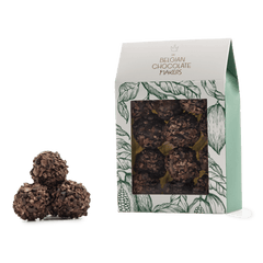 Pouch of Belgian truffles with cacao nibs coating