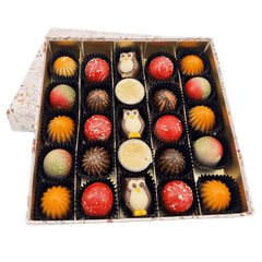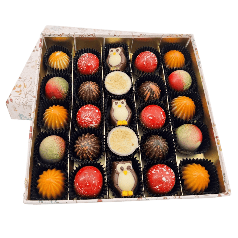 Discover our warm shadow pralines 375g, handcrafted Belgian chocolates with rich seasonal flavors. A gourmet gift box, perfect for sharing or indulgence.
