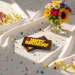 Tableta de mensajería de chocolate negro 45g "FELIZ CUMPLEAÑOS"