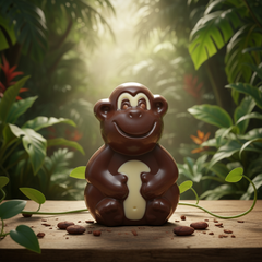 Juguetón y delicioso, nuestro monito de chocolate negro (100 g) se elabora artesanalmente en Bruselas a partir de chocolate ético en grano. Una cremosa creación belga que aporta diversión y sabor a cada bocado.