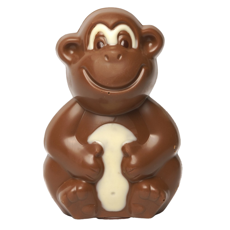 Juguetón y delicioso, nuestro monito de chocolate con leche (100 g) se elabora artesanalmente en Bruselas a partir de chocolate ético en grano. Una cremosa creación belga que aporta diversión y sabor a cada bocado.