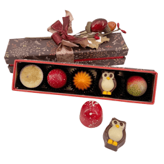 Assaporate le nostre praline Sussurri d'autunno da 65 g, realizzate a mano in cioccolato belga. Una selezione stagionale da intenditori, perfetta per un regalo o per un momento di relax