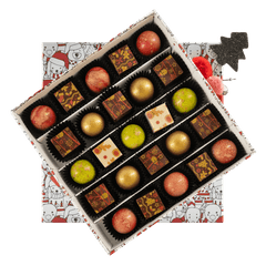 Celebrate le feste con la nostra confezione natalizia di 25 praline belghe, un elegante assortimento di cioccolatini artigianali realizzati con cacao di prima qualità, perfetti da regalare o per condividere dolci momenti di festa con i propri cari.