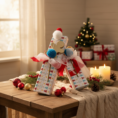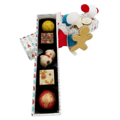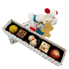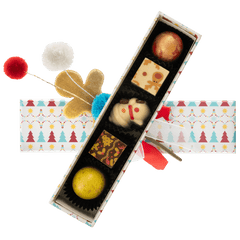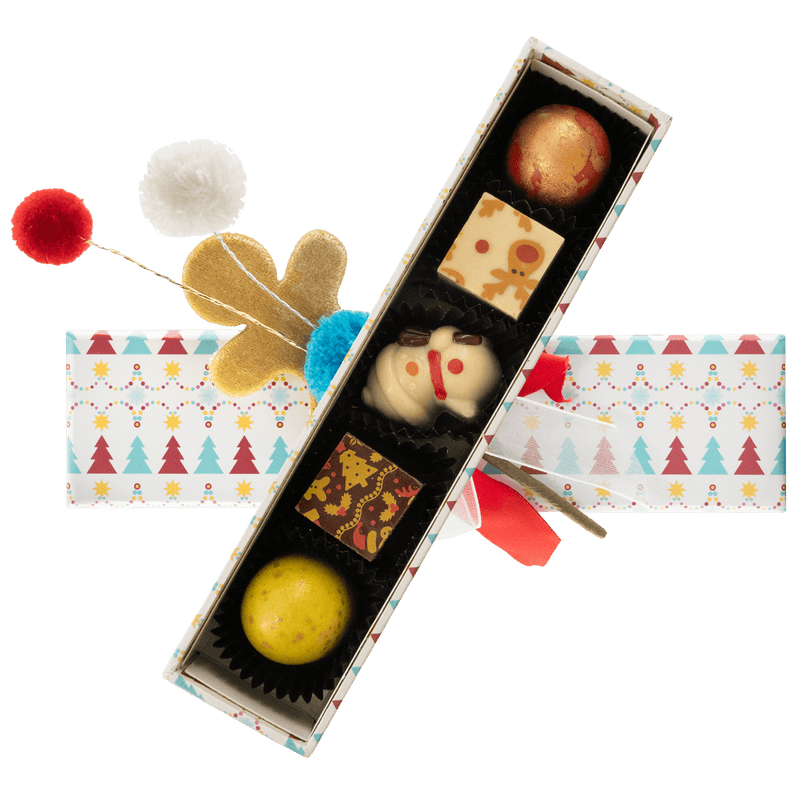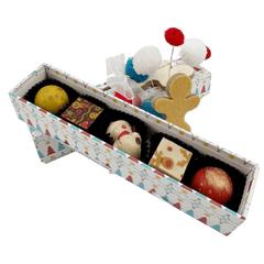 Vi presentiamo la nostra confezione natalizia Il mio amico orso con 5 praline belghe artigianali (75 g) presentate in un'affascinante confezione regalo festiva. Un mix perfetto di tradizione, creatività e golosità per condividere la magia del Natale