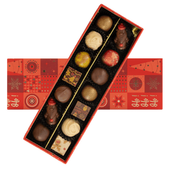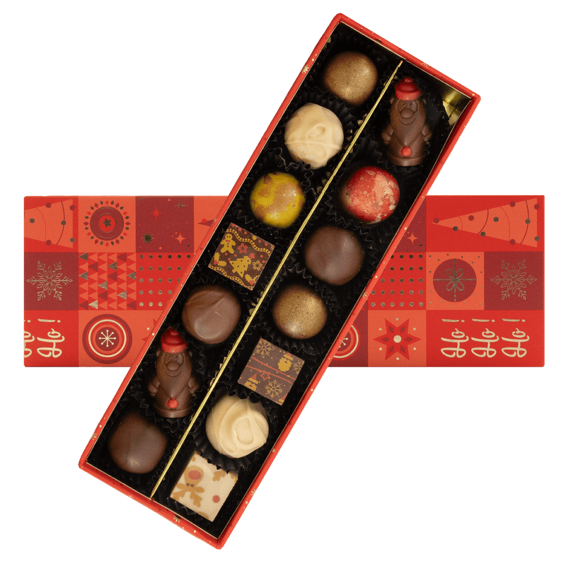 Una gioiosa confezione regalo natalizia che combina 14 praline e tartufi (225 g), realizzati a mano in Belgio. La nostra edizione Ho-Ho-Ho è un modo delizioso per condividere la magia del Natale.