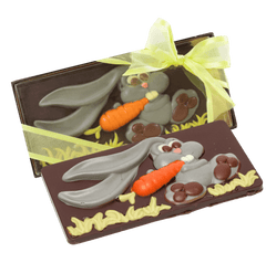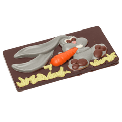 Deliziatevi con la nostra tavoletta di coniglietto pasquale di cioccolato fondente da 100 g, lavorata a mano in Belgio con cacao morbido e cremoso, un'incantevole delizia pasquale che unisce tradizione e golosità.