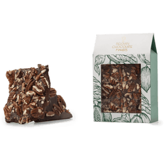 Tavolette spezzate di cioccolato fondente artigianale con noci pecan. Prodotte con cacao di prima qualità proveniente dalle Filippine, offrono un'esperienza gourmet ricca, fruttata e ricca di nocciole.