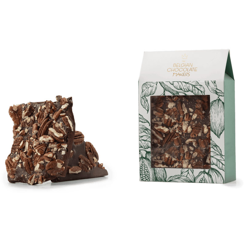 Tavolette spezzate di cioccolato fondente con noci pecan