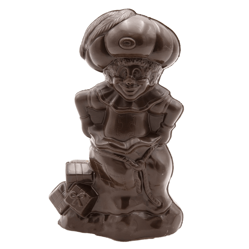 Scoprite Père Fouettard (compagno di San Nicola) in una figura artigianale di cioccolato fondente belga (230g). Prodotta a Bruxelles con cacao etico e tracciabile, è un omaggio giocoso alla tradizione natalizia belga e al folclore di San Nicola.