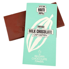 Tavoletta di cioccolato al latte artigianale Cap Haïtien 44%, prodotta a Bruxelles con cacao monorigine di Haiti. Una tavoletta da 100 g dalla consistenza morbida e dalle note di sapore raffinate.