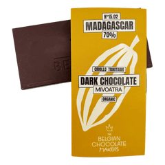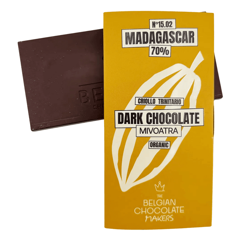 Provate l'eleganza del cioccolato fondente Madagascar Mivoatra 70%, una creazione monorigine realizzata a mano a Bruxelles da cacao etico con raffinate note fruttate
