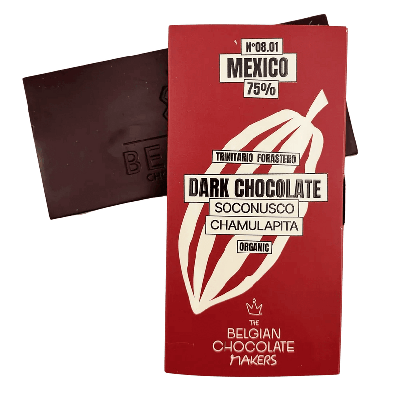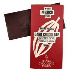 Messico Soconusco Chamulapita 75% di cioccolato fondente, prodotto artigianalmente a Bruxelles con cacao monorigine. Una tavoletta ricca con raffinate note di frutta e spezie.