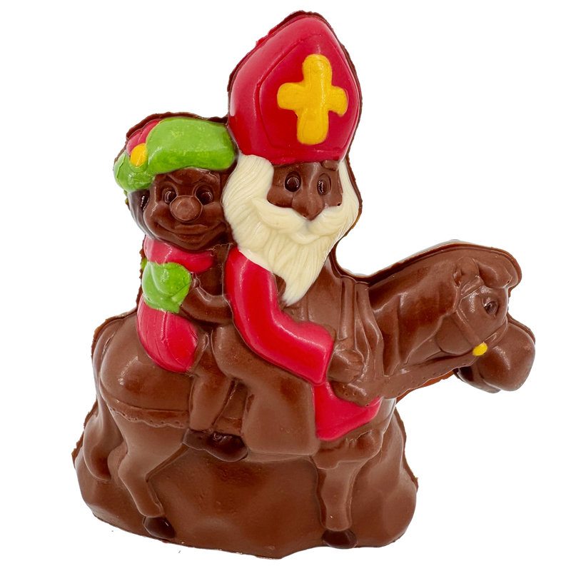 Provate la magia del nostro San Nicola al latte da 230 g in sella al suo cavallo, realizzato a mano in Belgio con cacao ricco e di prima qualità, una maestosa creazione festiva piena di tradizione e di gusto.