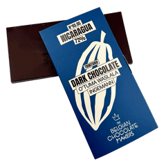 Tavoletta di cioccolato fondente artigianale O'Tuma Waslala Ingemann 72%, prodotta a Bruxelles con cacao monorigine del Nicaragua. Una tavoletta da 100 g con sapori ricchi e complessi