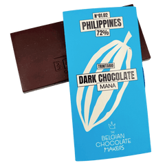 Philippines Mana 72% dark chocolate, un'esclusiva tavoletta monorigine prodotta artigianalmente a Bruxelles. Cacao raro con raffinate note tropicali per un'esperienza di degustazione davvero elegante.