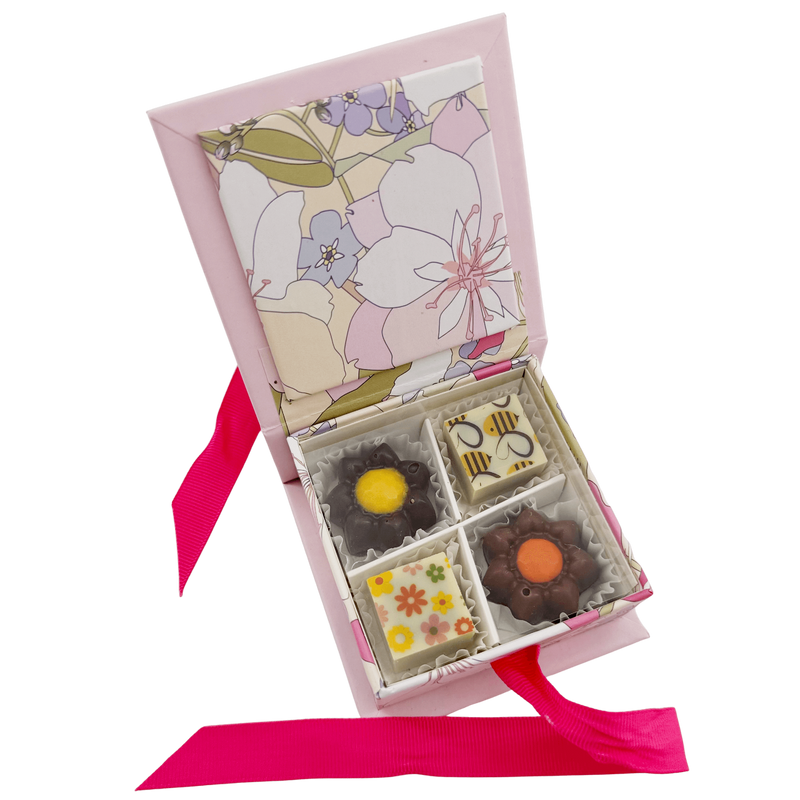 Festeggiate la primavera con la nostra confezione da 50 g di praline belghe assortite, fatte a mano a Bruxelles con cioccolato etico "bean-to-bar". Un delicato regalo stagionale pieno di freschezza e di sapore artigianale.