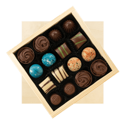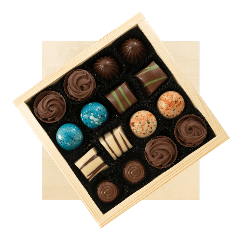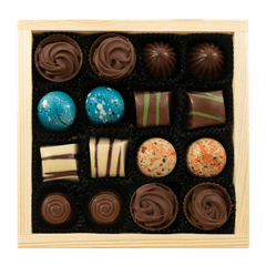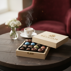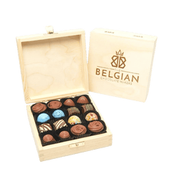 Acquista la nostra confezione regalo in legno con 16 praline belghe (240 g). Cioccolatini artigianali prodotti a Bruxelles, la confezione regalo perfetta per gli amanti del cioccolato