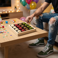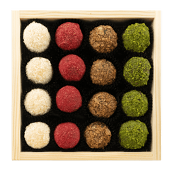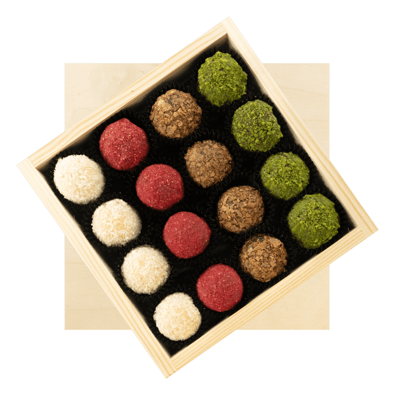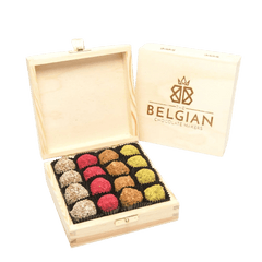 Acquista la nostra confezione regalo in legno con 16 tartufi di cioccolato belga. Realizzata a mano a Bruxelles, questa confezione regalo da 240 g è perfetta per gli amanti del cioccolato