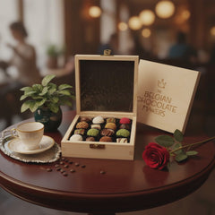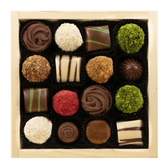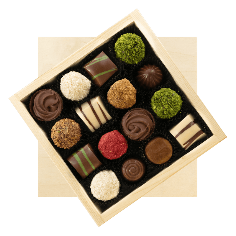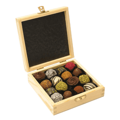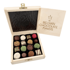 Concedetevi la nostra confezione regalo in legno con 16 praline e tartufi belgi. Prodotti a mano a Bruxelles con cacao di prima qualità, un regalo elegante per i veri amanti del cioccolato